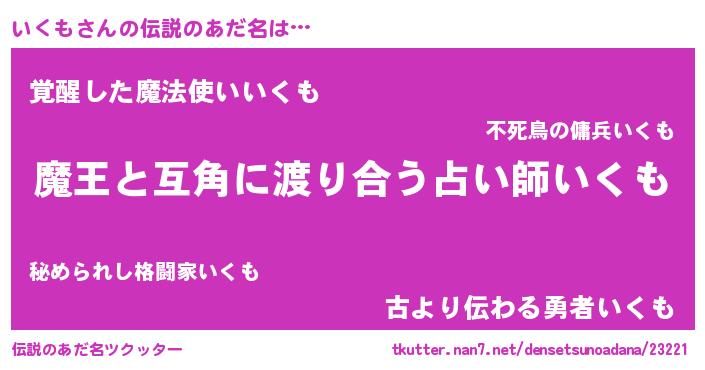 | ヒーロー風カッコイイあだ名 | 『愛の使者いくも』『最強戦士イクモ』 |