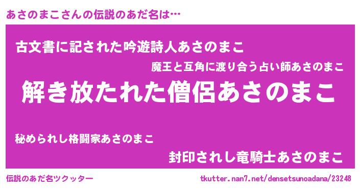 | 意味不明あだ名 | 『とにかく怪しいあさのまこ』 |