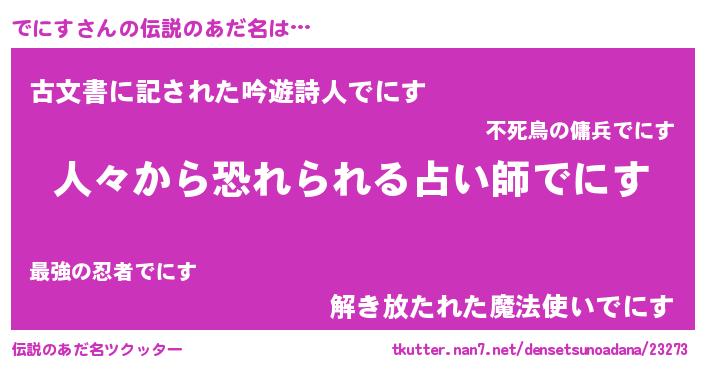 | ヒーロー風カッコイイあだ名 | 『正義の使者でにす』『ネオデニス』 |