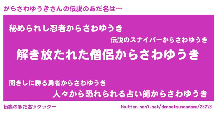 | 意味不明あだ名 | 『とにかく怪しいからさわゆうき』 |