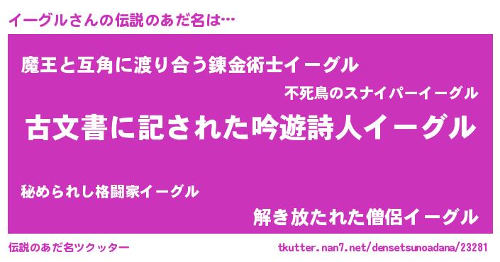 | ヘコむあだ名 | 『イーグル(笑)』『イーぷりん』 |