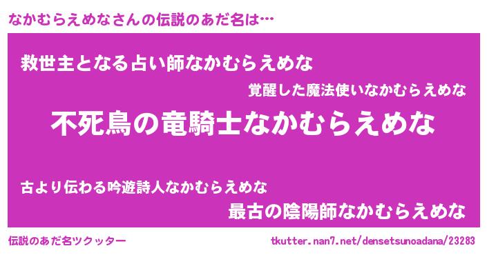 | 女子向けラノベタイトル風あだ名 | 『なかむらえめな姫と円卓の騎士』 |