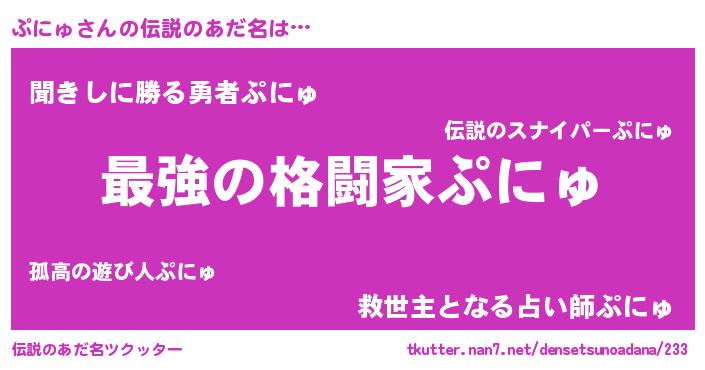 | 欧米人風あだ名 | 『ぷにゅクリステル』 |
