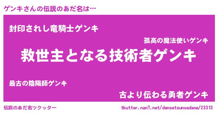 | ヒーロー風カッコイイあだ名 | 『仮面ゲンダー』『正義の使者ゲンキ』 |