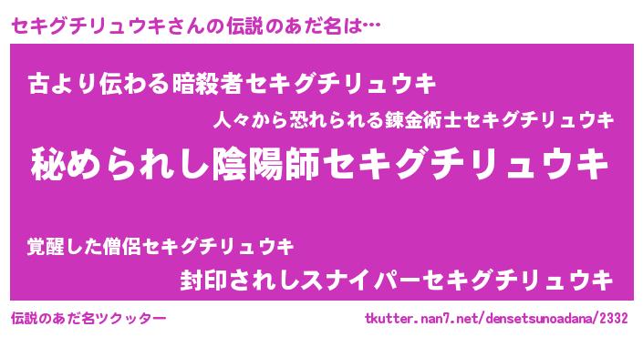 | ファンタジー風あだ名 | 『エターナルセキグチリュウキー』 |
