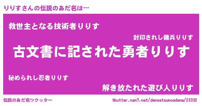 | ヘコむあだ名 | 『りりす(震え声)』『りりっちょ』 |