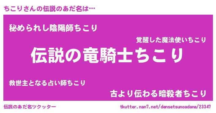| 胡散臭い通販商品みたいなあだ名 | 『必ず成功するブレスレット…その名も「ちこり」』 |