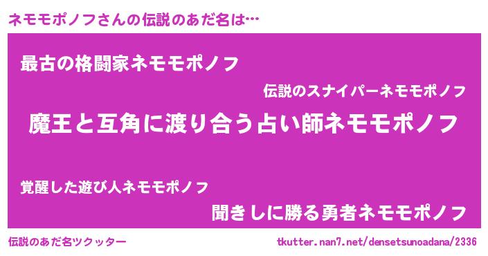 | ヒーロー風カッコイイあだ名 | 『慈愛の使者ネモモポノフ』 |