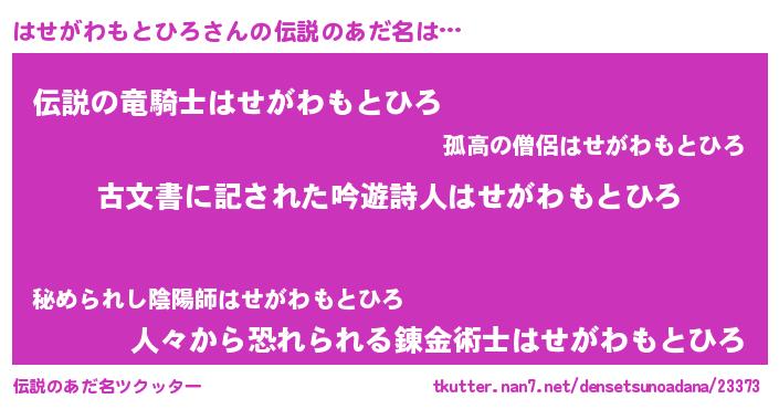 | 胡散臭い通販商品みたいなあだ名 | 『あなたにだけ特別に提供する100年もののヴィンテージワイン…その名も「はせがわもとひろ」』 |