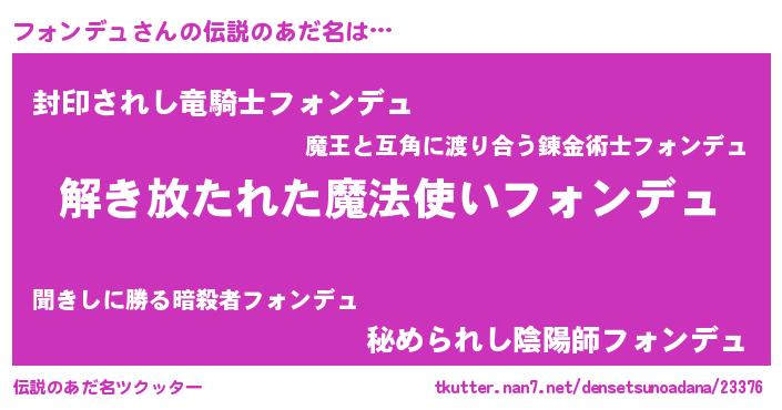 | 意味不明あだ名 | 『住所不定無職フォンデュ(2歳)』 |