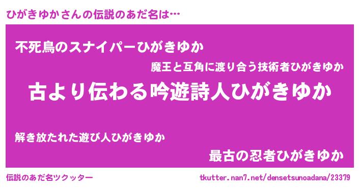 | 意味不明あだ名 | 『住所不定無職ひがきゆか(11歳)』 |