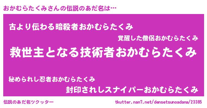| ヒーロー風カッコイイあだ名 | 『慈愛の使者おかむらたくみ』 |