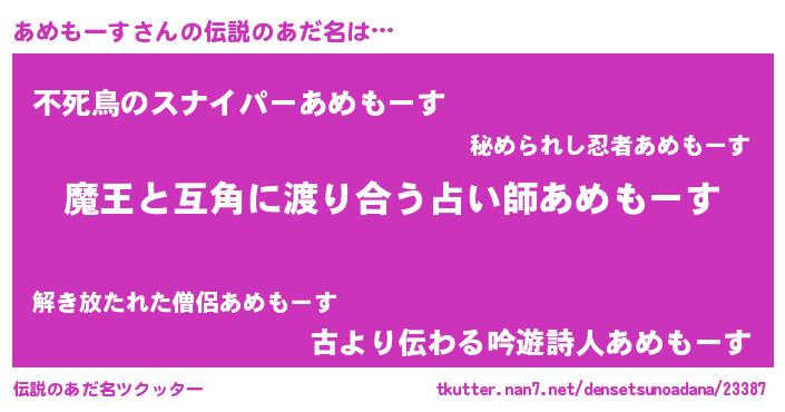| ヒーロー風カッコイイあだ名 | 『愛の使者あめもーす』『ネオアメモース』 |