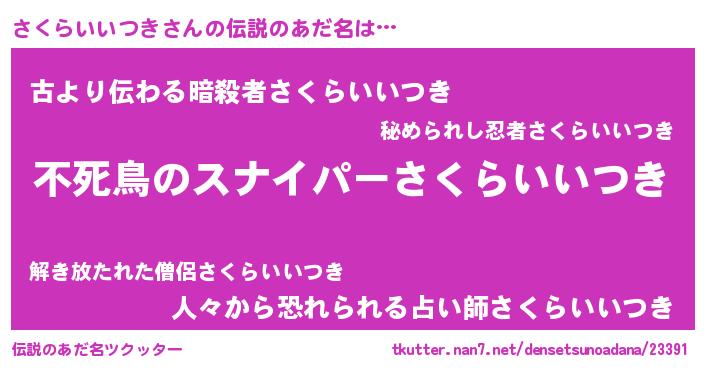 | 男性向けラノベタイトル風あだ名 | 『さくらいいつきの憂鬱』 |
