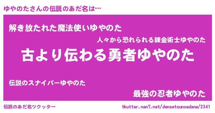 | ヒーロー風カッコイイあだ名 | 『仮面ユヤダー』『ネオユヤノタ』 |