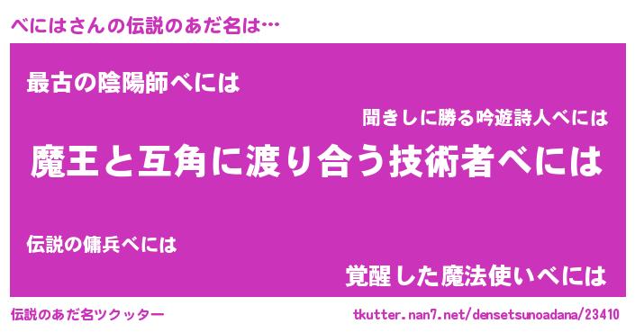 | 男性向けラノベタイトル風あだ名 | 『転生したらべにはだった件』 |