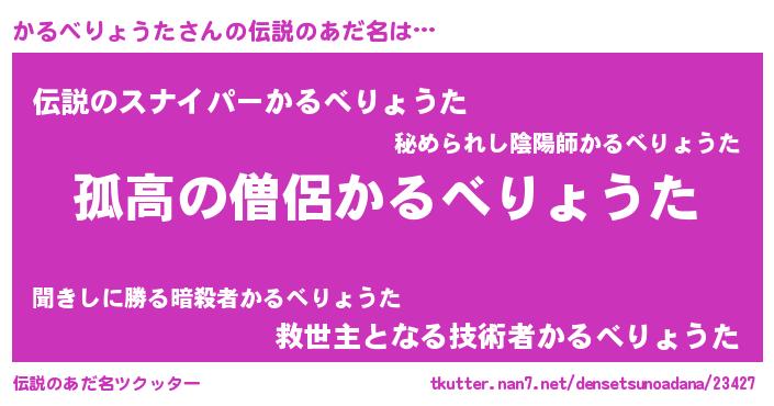 | 男性向けラノベタイトル風あだ名 | 『ダンジョンにかるべりょうたを求めるのは間違っているだろうか』 |
