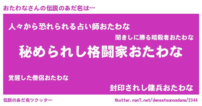 | 意味不明あだ名 | 『住所不定無職おたわな(10歳)』 |