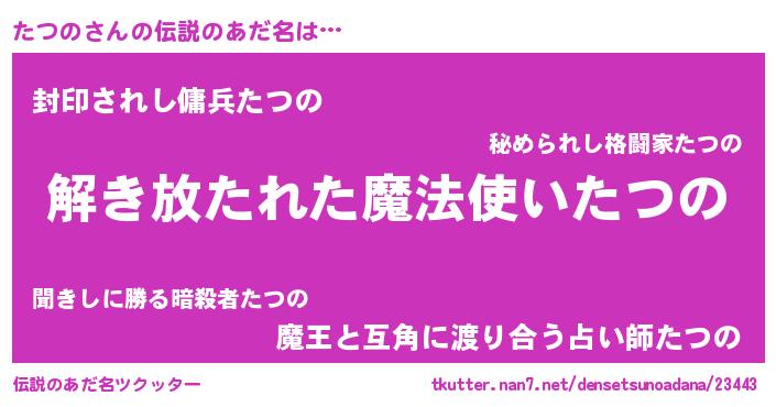 | ヒーロー風カッコイイあだ名 | 『サイバー戦士タツノ』『炎刃騎士タツ』 |