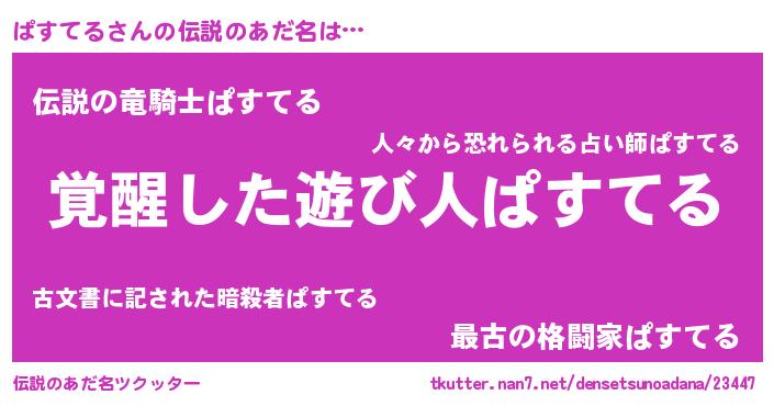 | 意味不明あだ名 | 『自称ぱすてる』『ペロリンぱすてる』 |