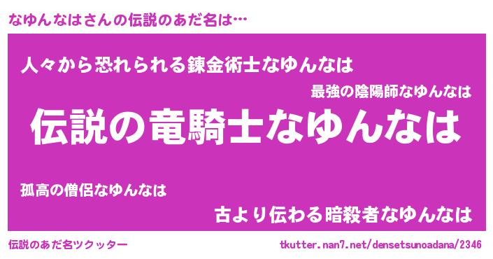 | 欧米人風あだ名 | 『ケンブリッジなゆんなは』 |