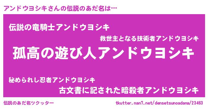 | 意味不明あだ名 | 『自称アンドウヨシキ』 |