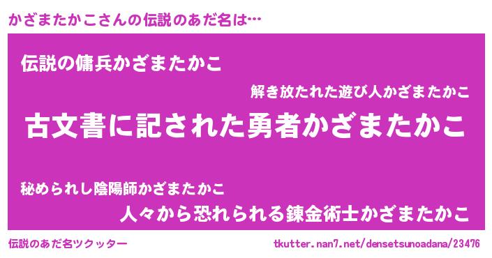 | 意味不明あだ名 | 『永久保存かざまたかこ』 |