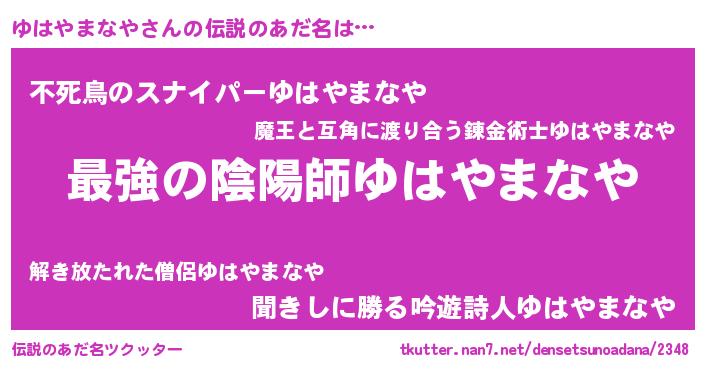 | 肩書あだ名 | 『ゆはやまなや大将』『ゆはやまなや教官』 |