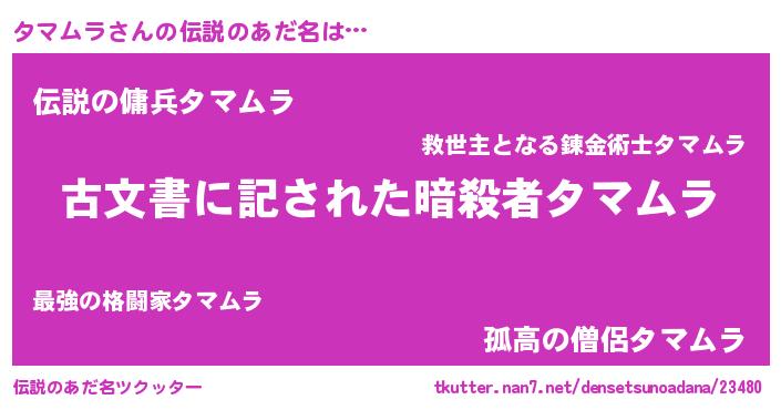 | ヒーロー風カッコイイあだ名 | 『ネオタマムラ』『超時空戦士タマムラ』 |