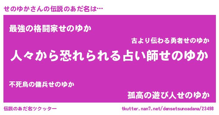 | 男性向けラノベタイトル風あだ名 | 『セノユカスレイヤー』 |