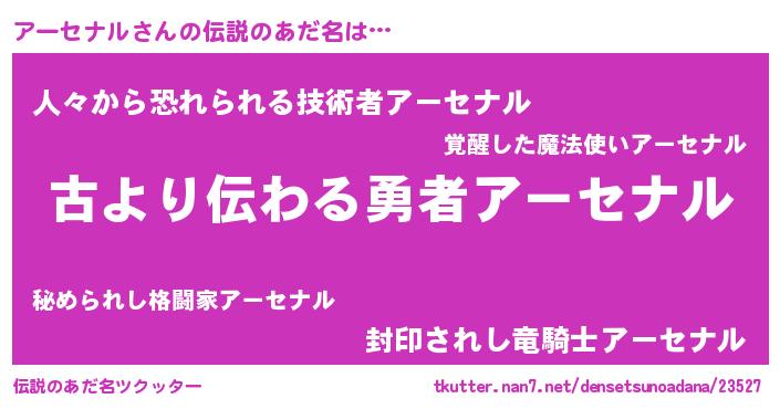 | 意味不明あだ名 | 『永久保存アーセナル』 |