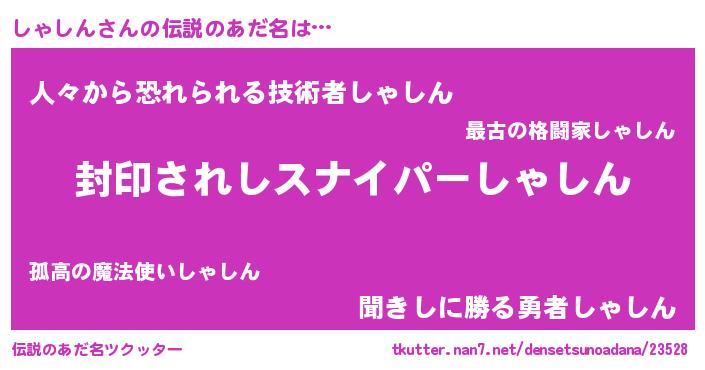 | ファンタジー風あだ名 | 『ユリシャヴァット』『ゼシャトゥ』 |