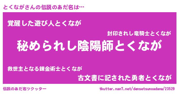 | ファンタジー風あだ名 | 『エターナルトクナガー』『ゼトクトゥ』 |
