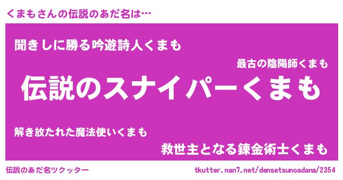 | 男性向けラノベタイトル風あだ名 | 『魔法科高校のくまも』 |