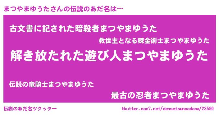| ポケモン風あだ名 | 『ヒマツヤマユウタ』『マツゴンZ』 |