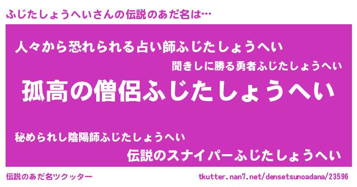 | 意味不明あだ名 | 『とにかく怪しいふじたしょうへい』 |