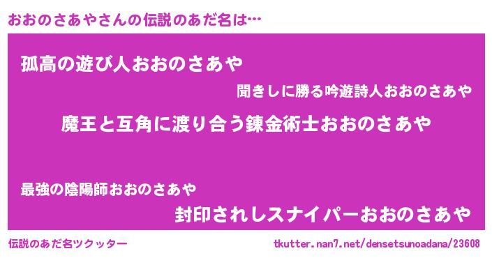| 意味不明あだ名 | 『住所不定無職おおのさあや(86歳)』 |