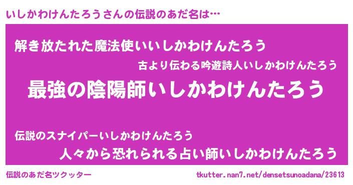 | 意味不明あだ名 | 『自称いしかわけんたろう』 |