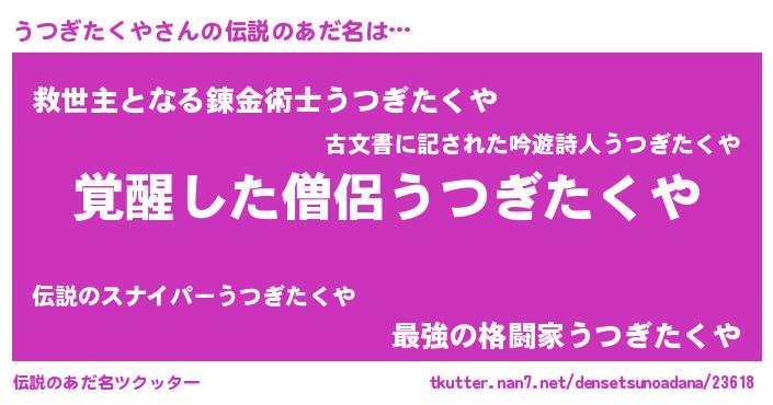 | 意味不明あだ名 | 『とにかく怪しいうつぎたくや』 |