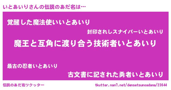 | ヘコむあだ名 | 『いとを』『いとあいり(小並感)』 |