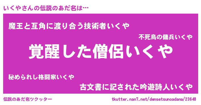 | 男性向けラノベタイトル風あだ名 | 『いくやの嫁は女の子じゃないと思った?』 |
