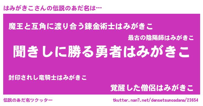 | 男性向けラノベタイトル風あだ名 | 『はみがきこという概念が存在しない退屈な世界 』 |