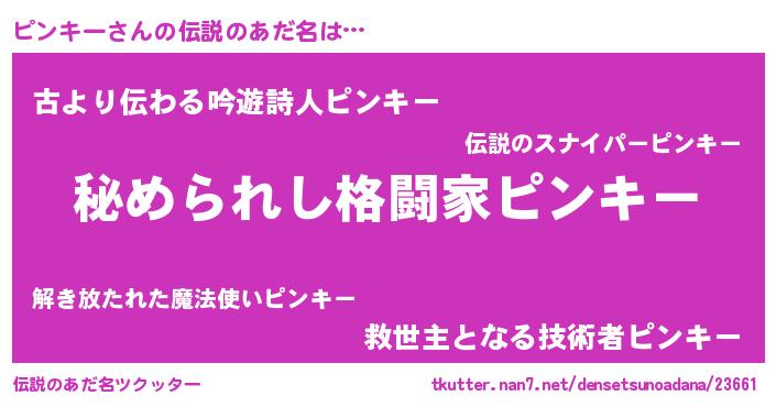 | ヒーロー風カッコイイあだ名 | 『ウルトラピンキーマン』『ネオピンキー』 |