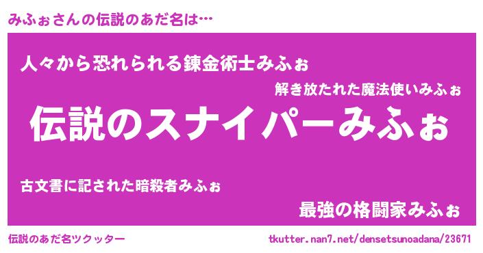 | ポケモン風あだ名 | 『ミフゴンZ』『ミフチュウ』 |
