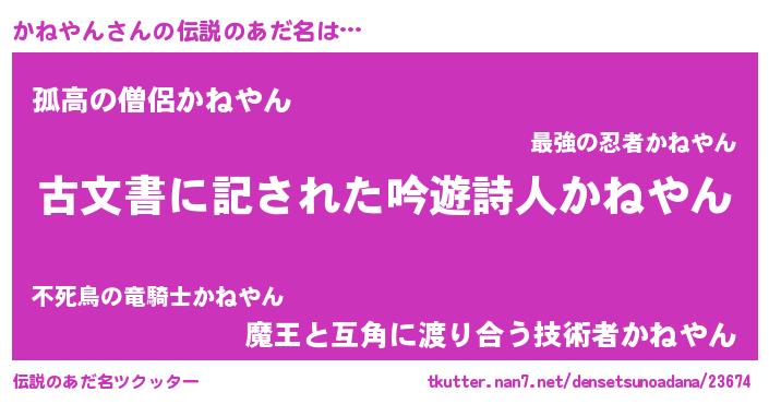 | 女子向けラノベタイトル風あだ名 | 『かねやんストレイドッグス』 |
