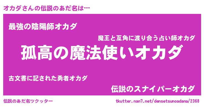 | 女子向けラノベタイトル風あだ名 | 『オカダは平凡を望む』『オカダの婚約者』 |