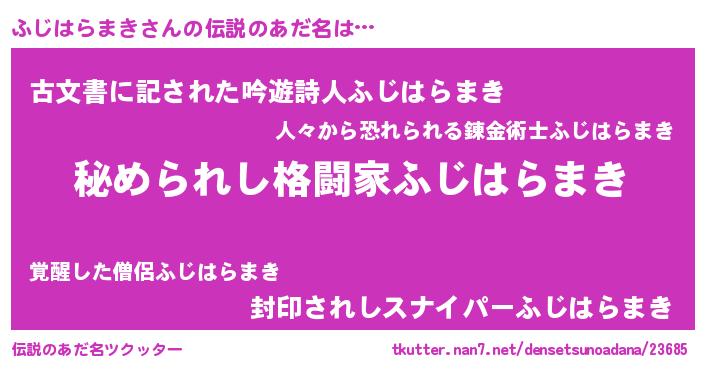 | 女子向けラノベタイトル風あだ名 | 『シンデレラふじはらまき家の靴箱館』 |