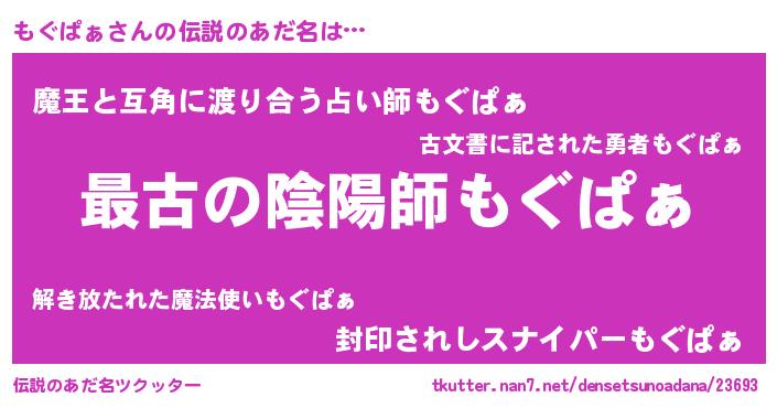 | ヒーロー風カッコイイあだ名 | 『ウルトラもぐぱぁマン』『仮面モグダー』 |