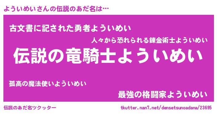 | ヒーロー風カッコイイあだ名 | 『スーパーヨウイメイ』『ネオヨウイメイ』 |