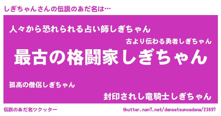 | ファンタジー風あだ名 | 『エターナルシギチャンー』『シギフェル』 |